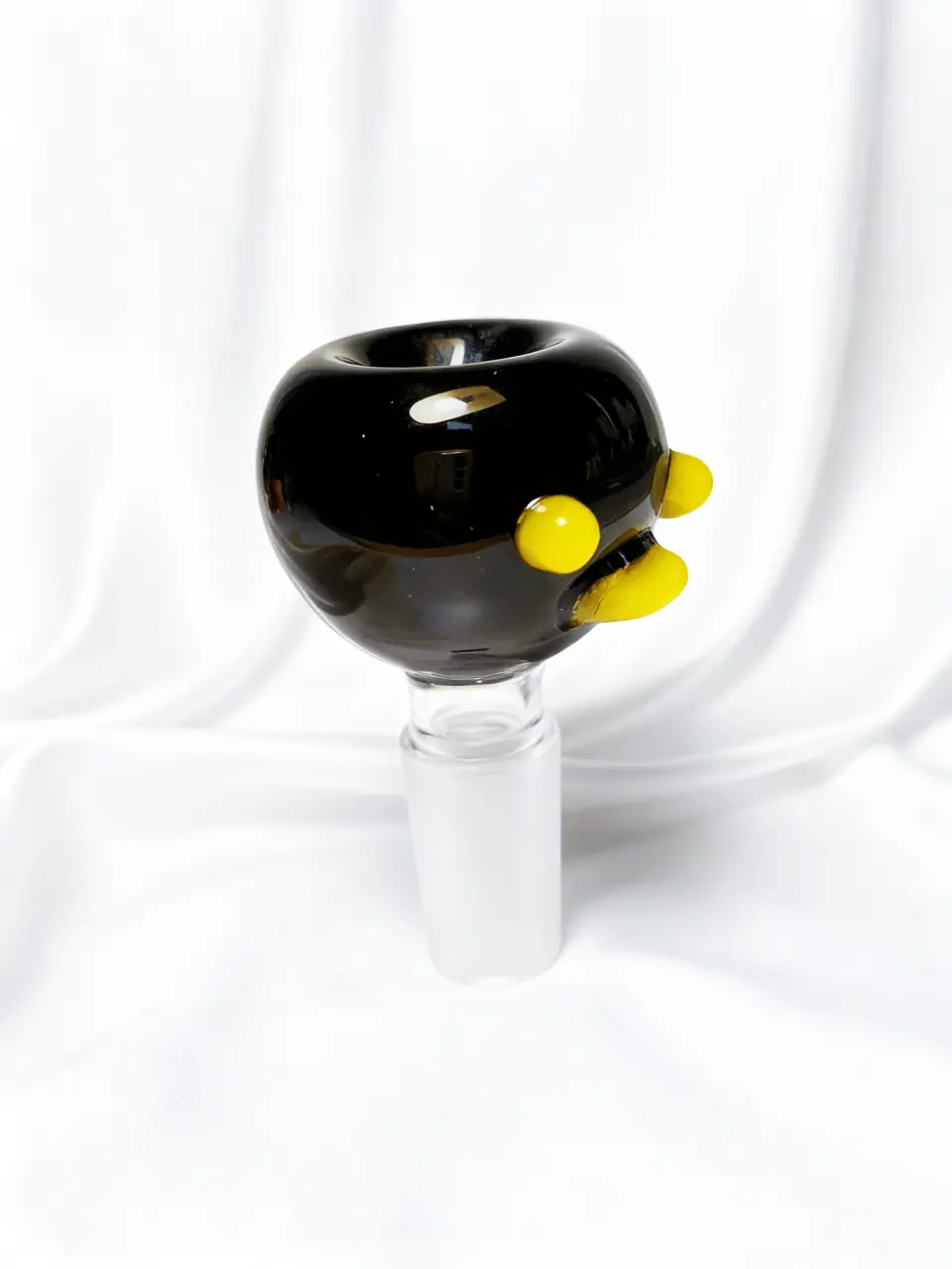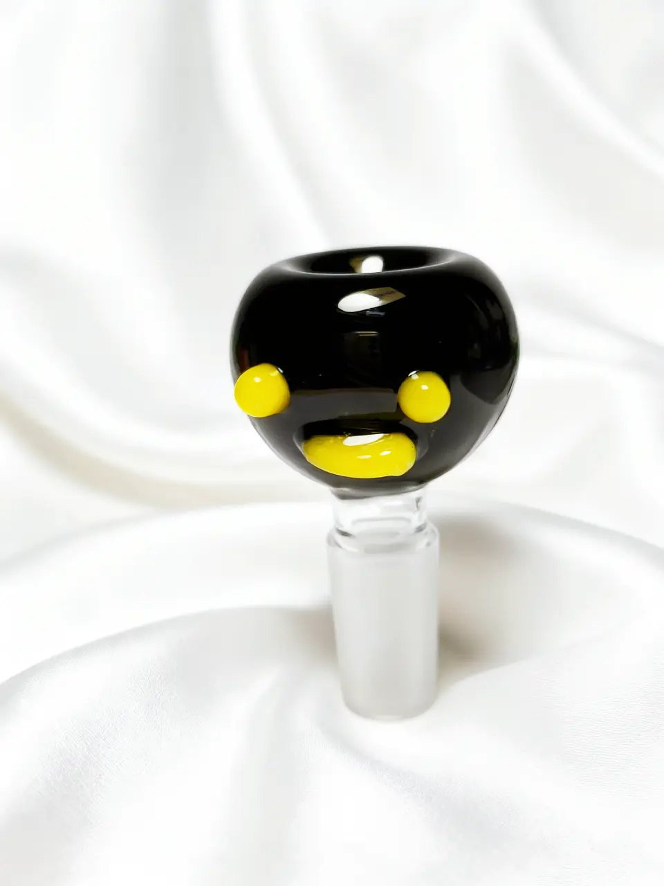 14mm Black & Yellow Face Glass Bowl Piece | Cute & Quirky