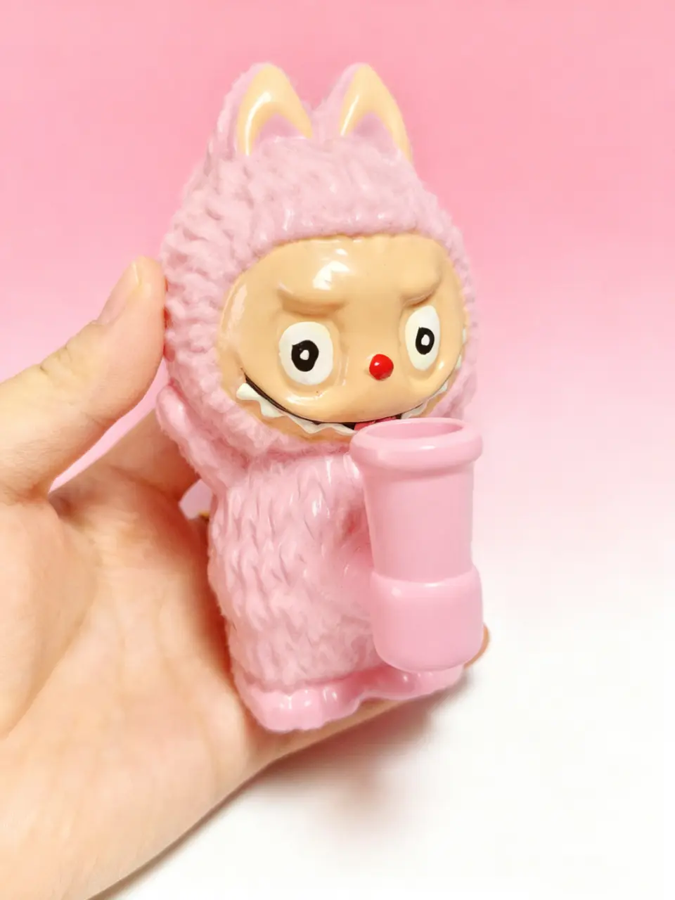 Adorable Labubu Shape Pink Glass Bubbler Bong