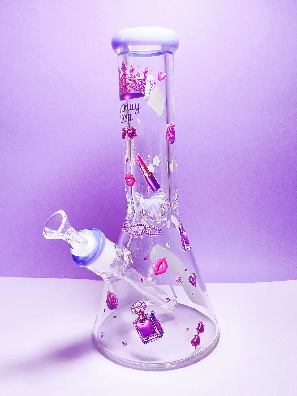 Birthday Queen Abstract Purple Beaker Glass Bong