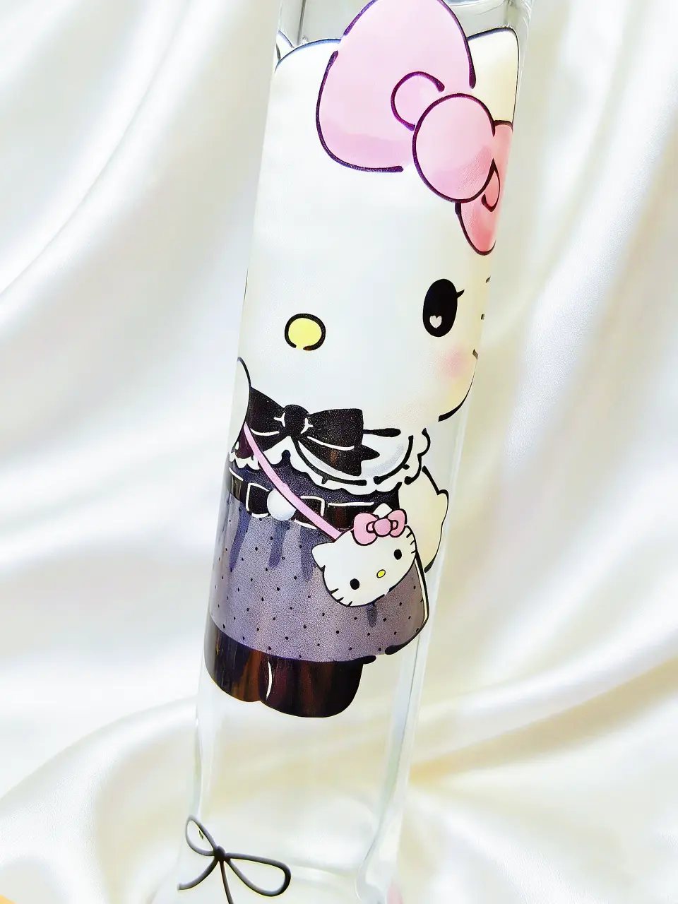 👒🎀The neck of the pipe features Hello Kitty dressed in a black lace polka-dot dress, wearing a soft pink bow and a cute crossbody bag. Her gentle expression and delicate outfit perfectly capture the grace and classic beauty of Lolita style.