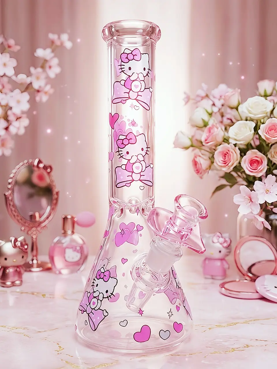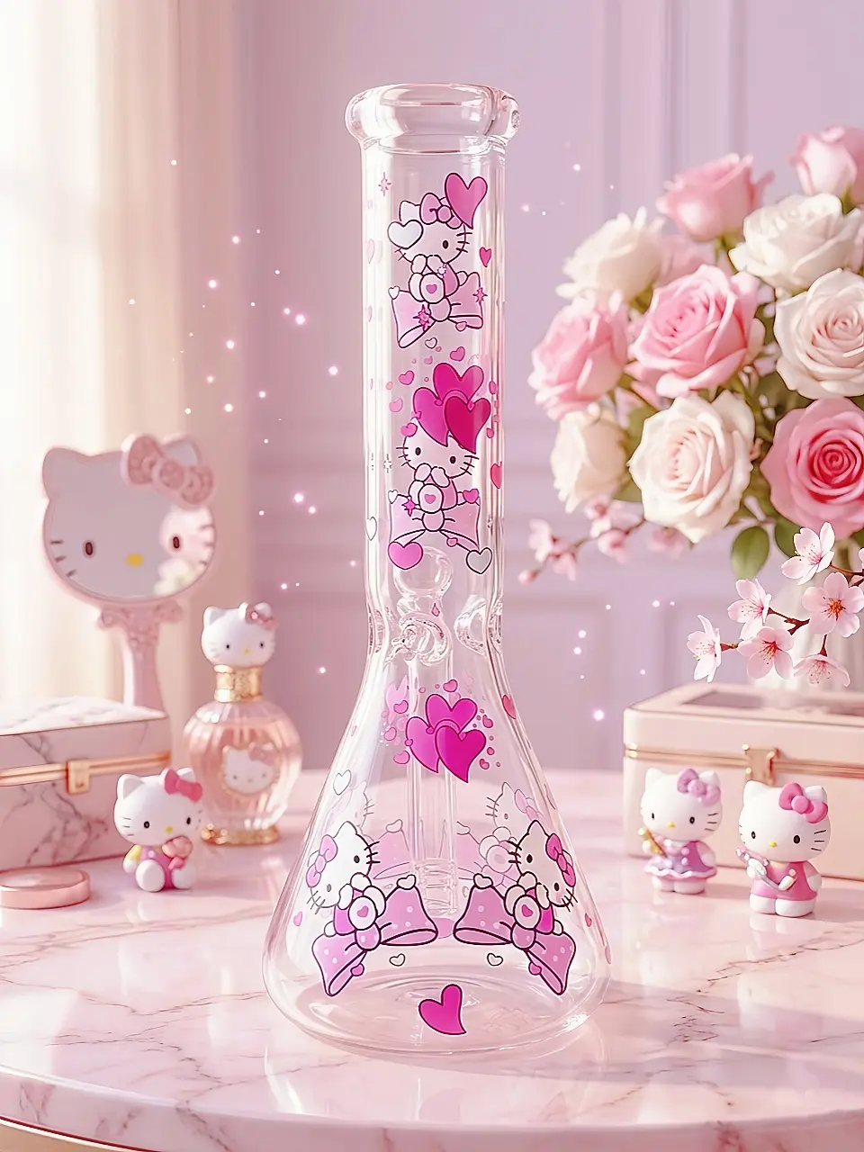 🎀🩷This sweet glass piece combines the timeless cuteness of Hello Kitty with modern playful art. Designed with a sturdy beaker base, the soft pink bow is the star of the design, surrounded by hearts and sparkling stars, creating a dreamy, healing, and super girly aesthetic.
