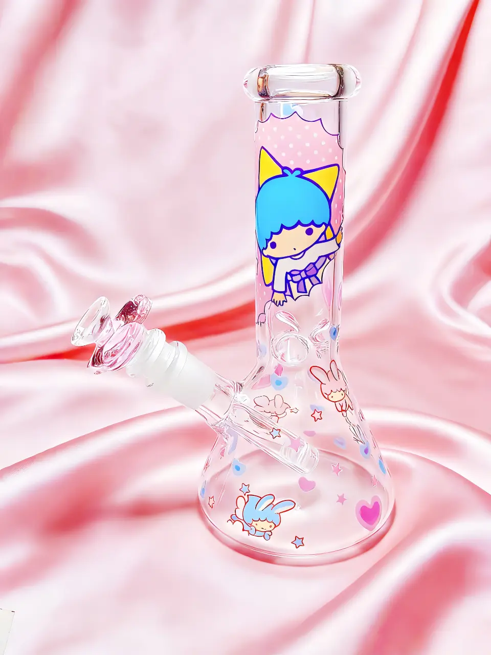 🌟🌟This bong brings the most romantic Sanrio duo—Little Twin Stars—into real life. Kiki and Lala walk together through a soft pink galaxy, surrounded by hearts and stars. It feels like a gentle trip into a dreamy universe, full of sweetness and calm.