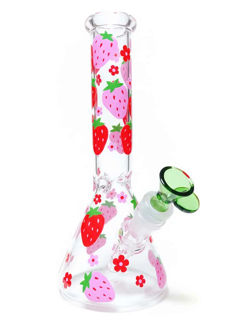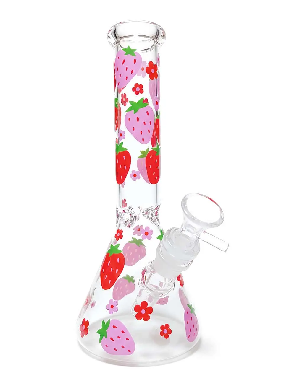 Bring home the Strawberry & Floral Beaker Glass Bong and let every puff immerse you in a playful berry garden—bright, cheerful, and full of summer bliss.